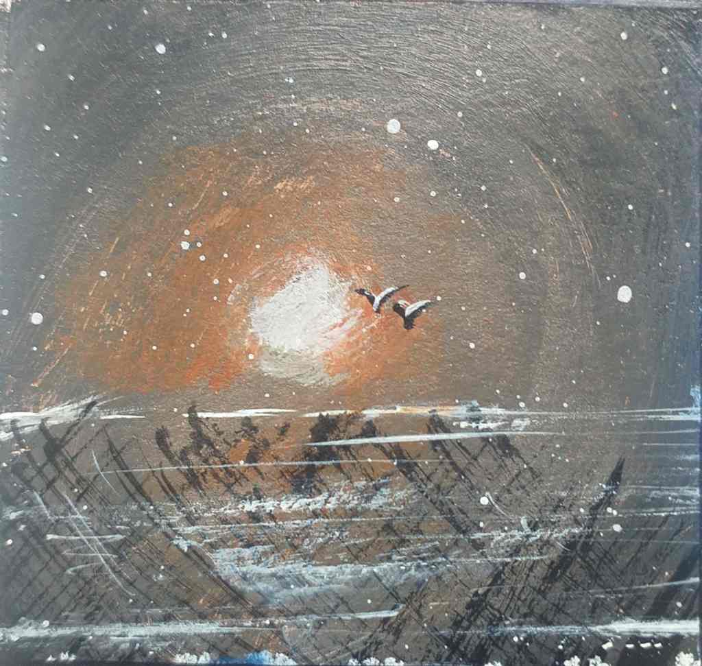 My work often reflects my curiosity and imagination. I love experimenting with different materials and techniques, whether that means layering acrylics to create depth, capturing shadows in charcoal, or blending traditional and modern styles. Each piece I create is a small exploration — of mood, nature, and human emotion — where I try to balance fine detail with free, expressive strokes.